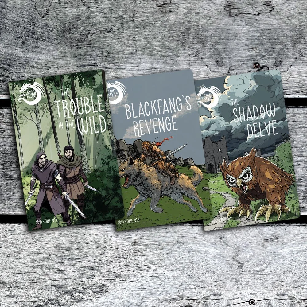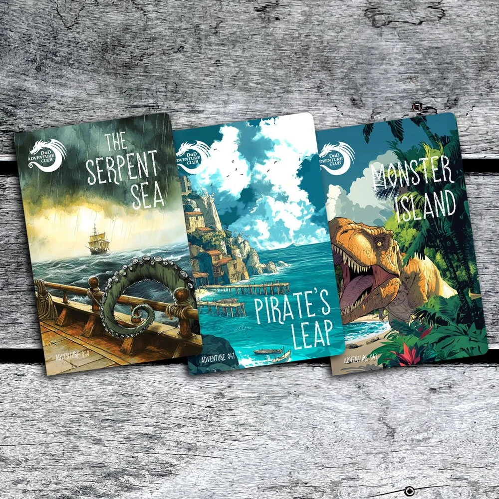 DnD Adventures, built for Kids! Each month is an original printed book adventure — art, maps and design. A new character, DnD tricks & tips for play, and monsters.