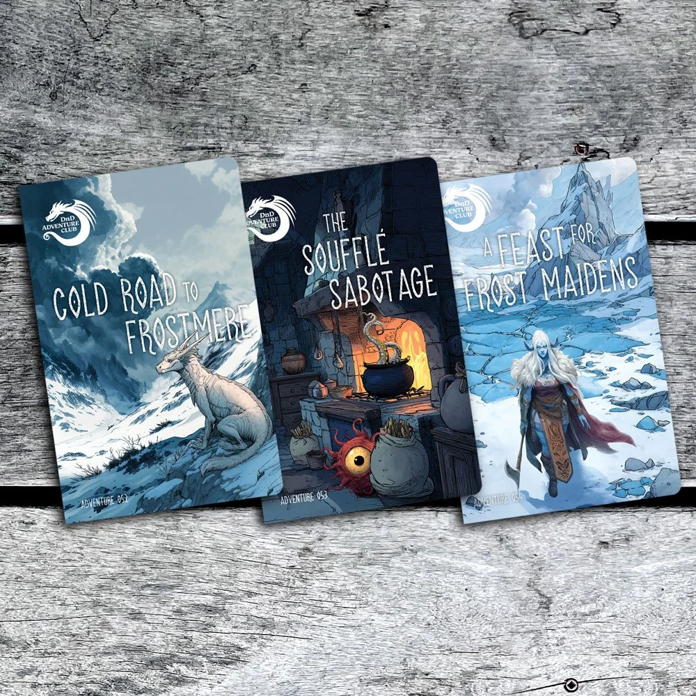 When the perfect dinner party is the only thing standing between an ice-locked fishing village and an army of Frost Giants, it’s up to the players to deliver the perfect soufflé. Hopefully they won’t end up on the menu in Adventure 054: A Feast for Frost Maidens.